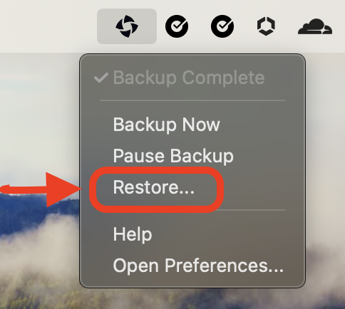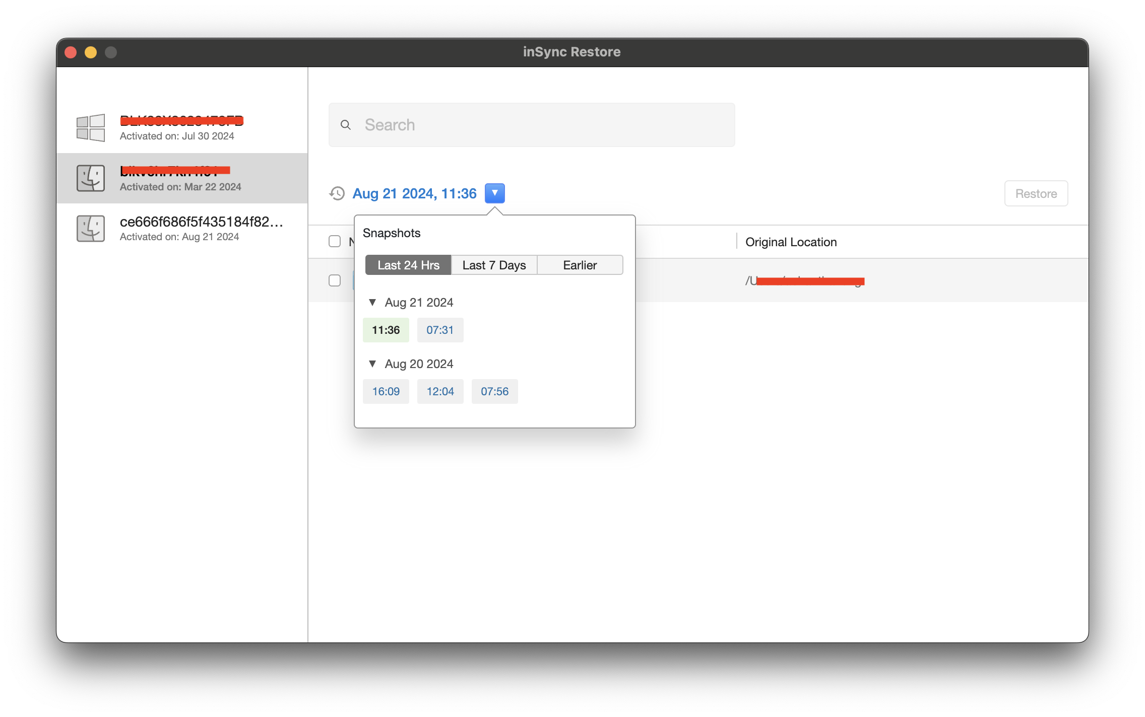 A “Druva Restore” window will appear. Review the list of machines and select the one you want to restore from. Then, choose the date you want to restore from.