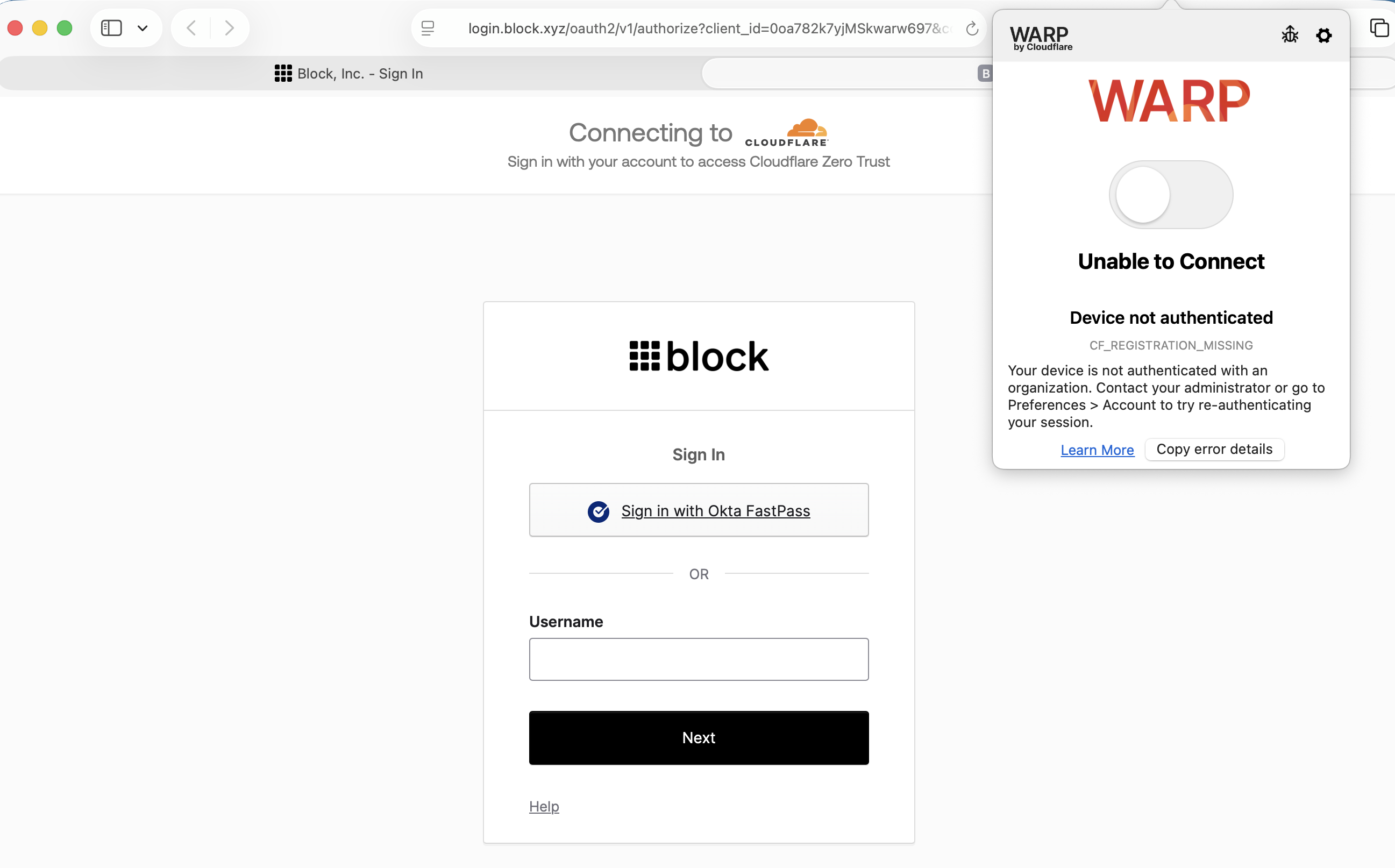 You may see a pop-up window appear indicating CloudflareWARP is unable to connect. You can ignore this for now.